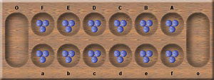 | The format of the move codes that should be sent from an external application is very simple. When a player wants to sow seeds from some pit the application should send a numeric index of the source pit. 1 should be sent if the source pit is "a" or "A", 2 - if the source pit is "b" or "B" and so on. |