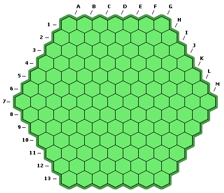 Omega is played on a hexagonal board with five to ten cells per side.