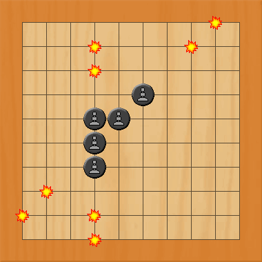 Пушка - это горизонтальный, вертикальный или диагональный ряд из 3 стоящих рядом солдат игрока. adjacent friendly soldiers. Пушка может перемещаться вдоль своей линии в любом из двух возможных направлений, если следующая по направлению движения точка не занята другой фигурой: